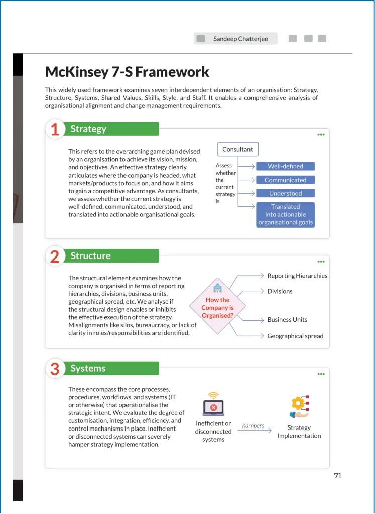 Knowing the basics is good, but this book goes far beyond that. It’s designed to elevate you from a consultant who knows theory to one who thrives in real-world scenarios. From learning how to apply the right frameworks to tackling client politics, this book provides practical, tested strategies that the top 5% of consultants swear by.